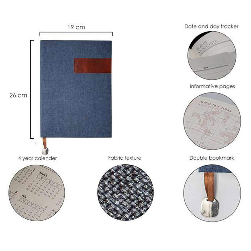 A4 Fabric Cover Notebook with Leather Patch – Blue CG0084