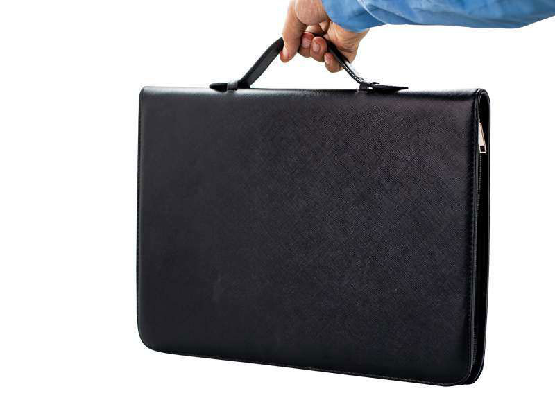 An elegant A4-sized office folder with a handle, designed for professionals who need both function and style. Features a soft inner lining and secure compartments to carry documents and essentials with ease.