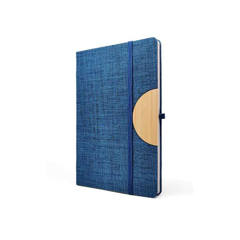This A5 notebook combines a fabric cover with a bamboo accent and a built-in mobile stand for added functionality. Ideal for professionals, students, and corporate gifting.