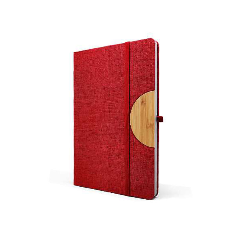 This A5 notebook combines a fabric cover with a bamboo accent and a built-in mobile stand for added functionality. Ideal for professionals, students, and corporate gifting.