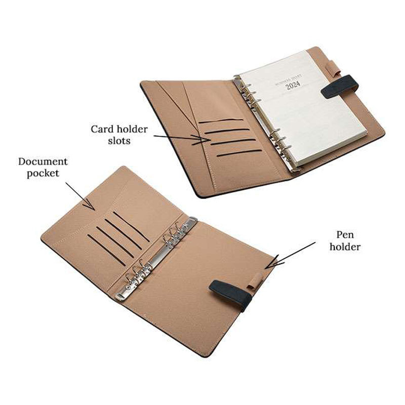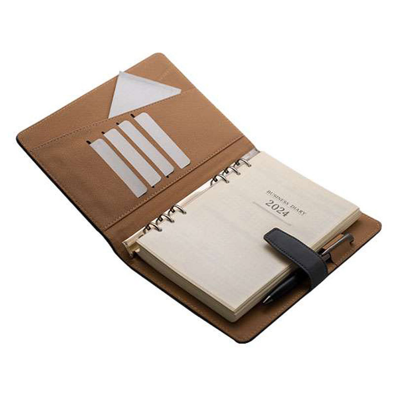 This A5-sized suede finish organizer includes daily dated inserts for the current year, designed for professionals who value structure and style. The hard cover ensures durability, and the spiral binder allows smooth and practical use throughout the year.