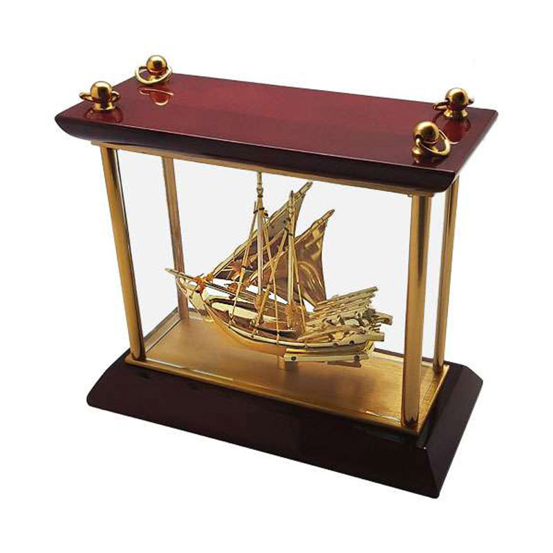 A finely crafted model of the traditional Arabian dhow boat, elegantly showcased in a glass case. This timeless piece is a perfect choice for corporate gifting, farewell occasions, awards, or as a memorable souvenir from Dubai and the UAE. Its compact size also makes it an elegant addition to home or office décor. Ready stock available for wholesale and bulk orders.