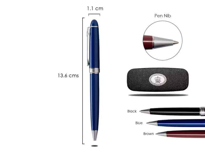 A sleek blue metal pen accented with silver trimmings, designed for a refined and professional look.
