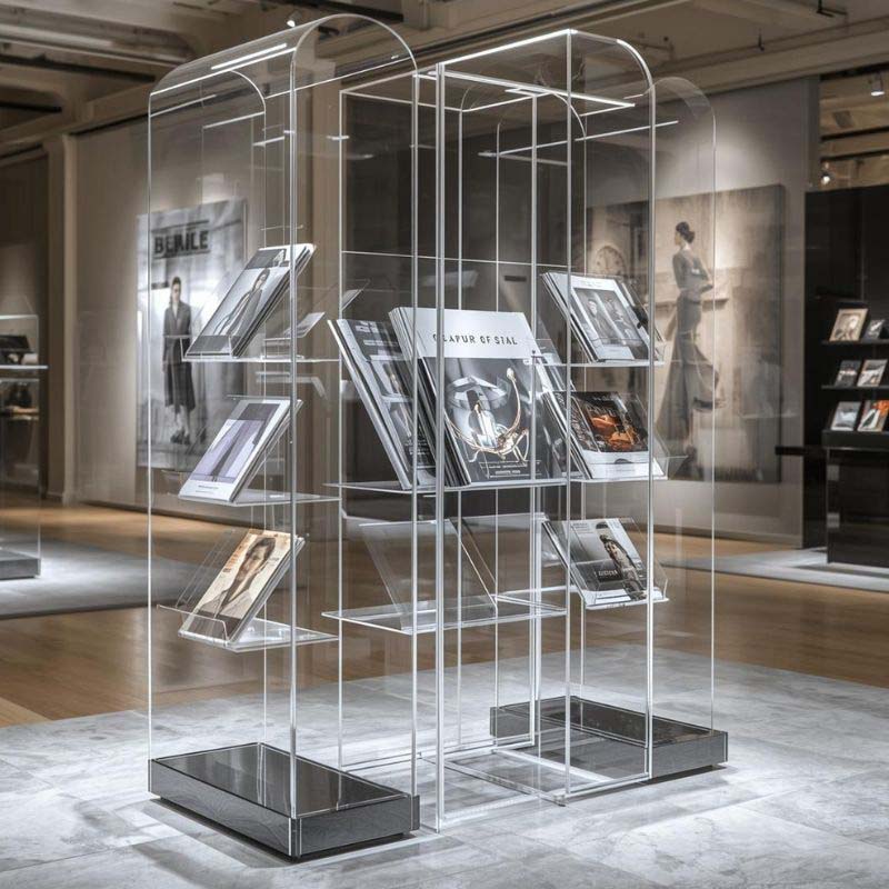 Acrylic stands are a versatile display solution for exhibitions, retail spaces, and corporate events in Dubai and across the UAE. They can be customized in different styles to suit your requirements, including pedestals, stands with shelves, and tailored designs for product showcasing. With a sleek and modern finish, acrylic stands highlight your items while maintaining a professional presentation. Our team can create and execute custom designs to match your branding, ensuring your display stands out at exhibitions and promotional events. Durable, lightweight, and easy to set up, these stands provide a practical yet elegant way to present your products.