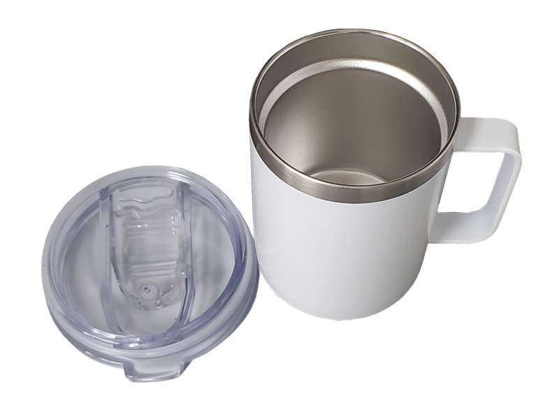Double-Walled Stainless Steel Cup – 350ml with Handle – White CG0306