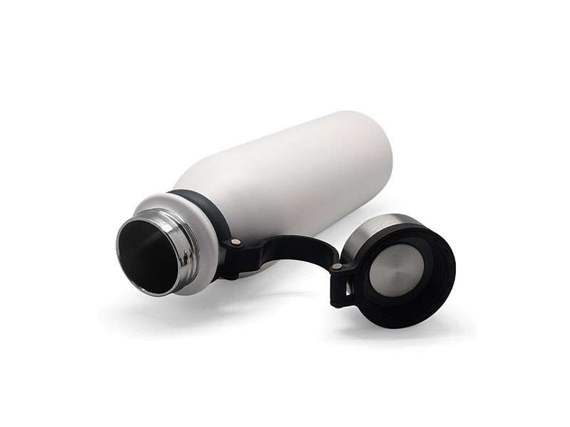 Double-Walled Stainless Steel Vacuum Bottle – 600ml with Carry Handle – White CG0282