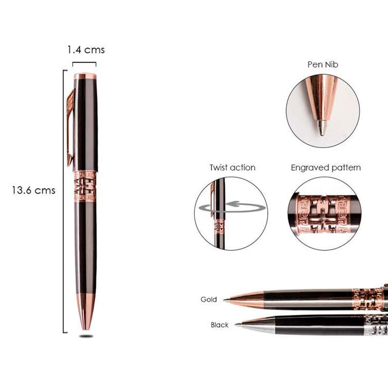 This premium twist-action ballpoint pen features a glossy black lacquer finish complemented by refined gold detailing. Designed for professional elegance, it is an excellent choice for corporate gifting and executive use.