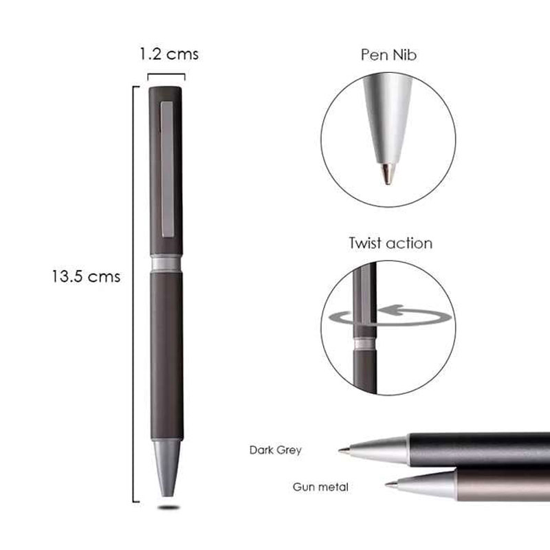 A sleek, matte-finish ballpoint pen in a gunmetal shade, ideal for professional settings and corporate gifting. Its refined design and sturdy metal body offer a premium writing experience.
