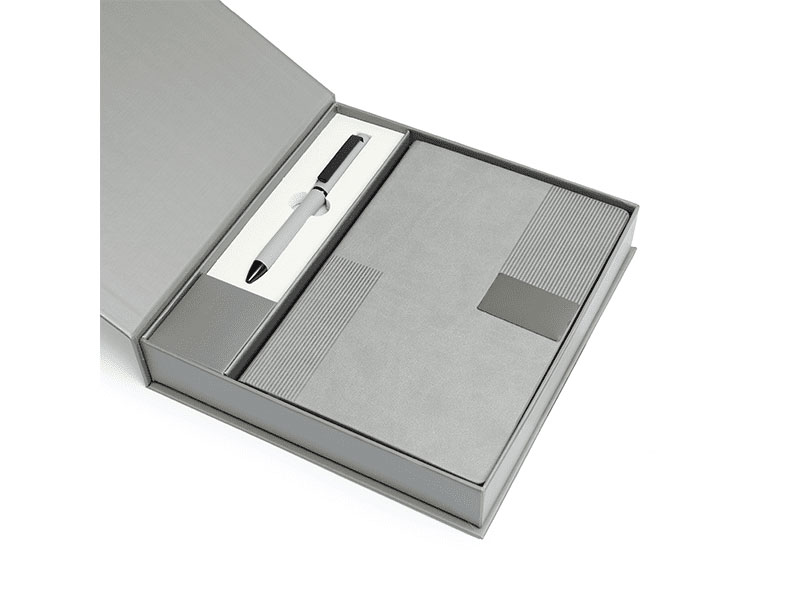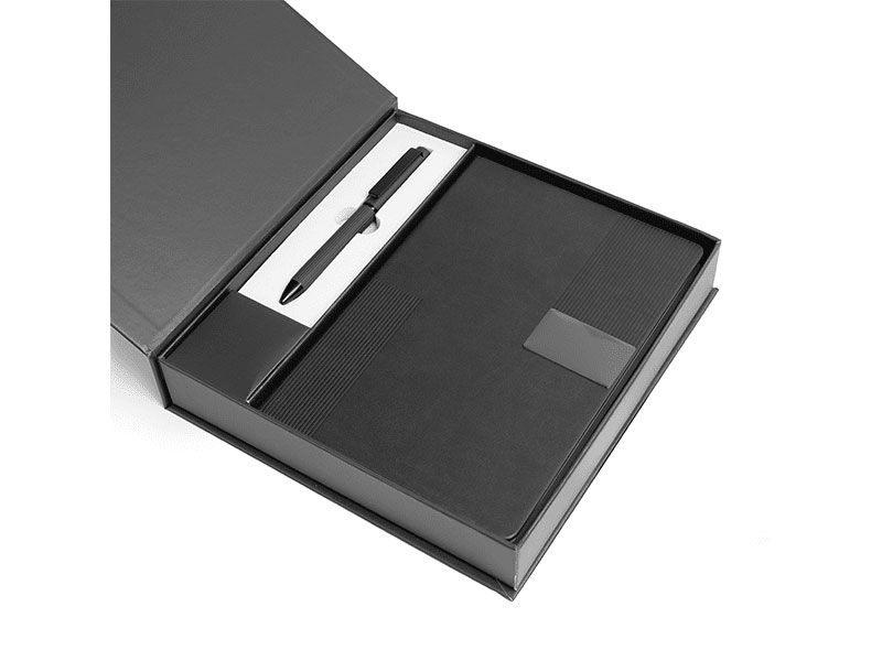 Packaged in a magnetic closure box available in Black, Blue, or Grey, this set is ideal for corporate events, executive gifting, and high-value giveaways. The metal plate on the notebook offers ample space for custom branding, making it a thoughtful and professional choice.