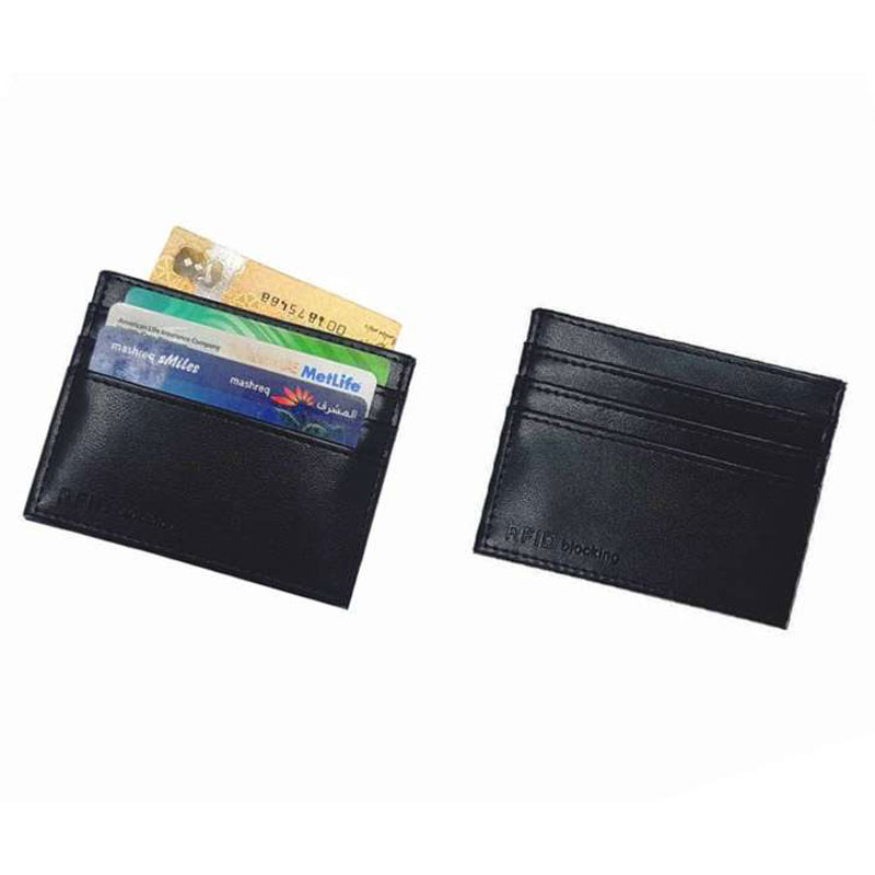 A compact and secure business card wallet designed to protect your personal information. This wallet blocks unauthorized RFID scanning, helping prevent identity theft while storing your ID, credit, and debit cards.