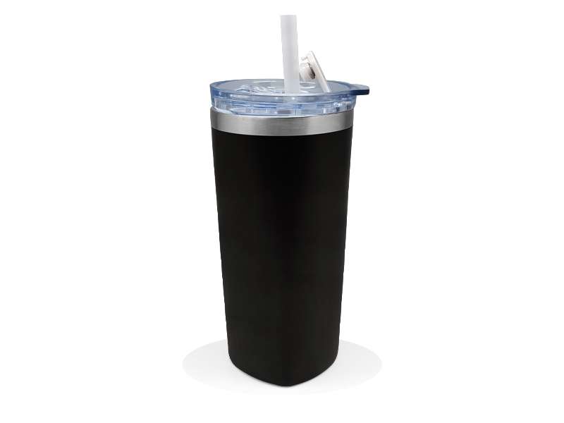 Stainless Steel Tumbler with Straw and Sliding Lid – 630ml – Black CG0299